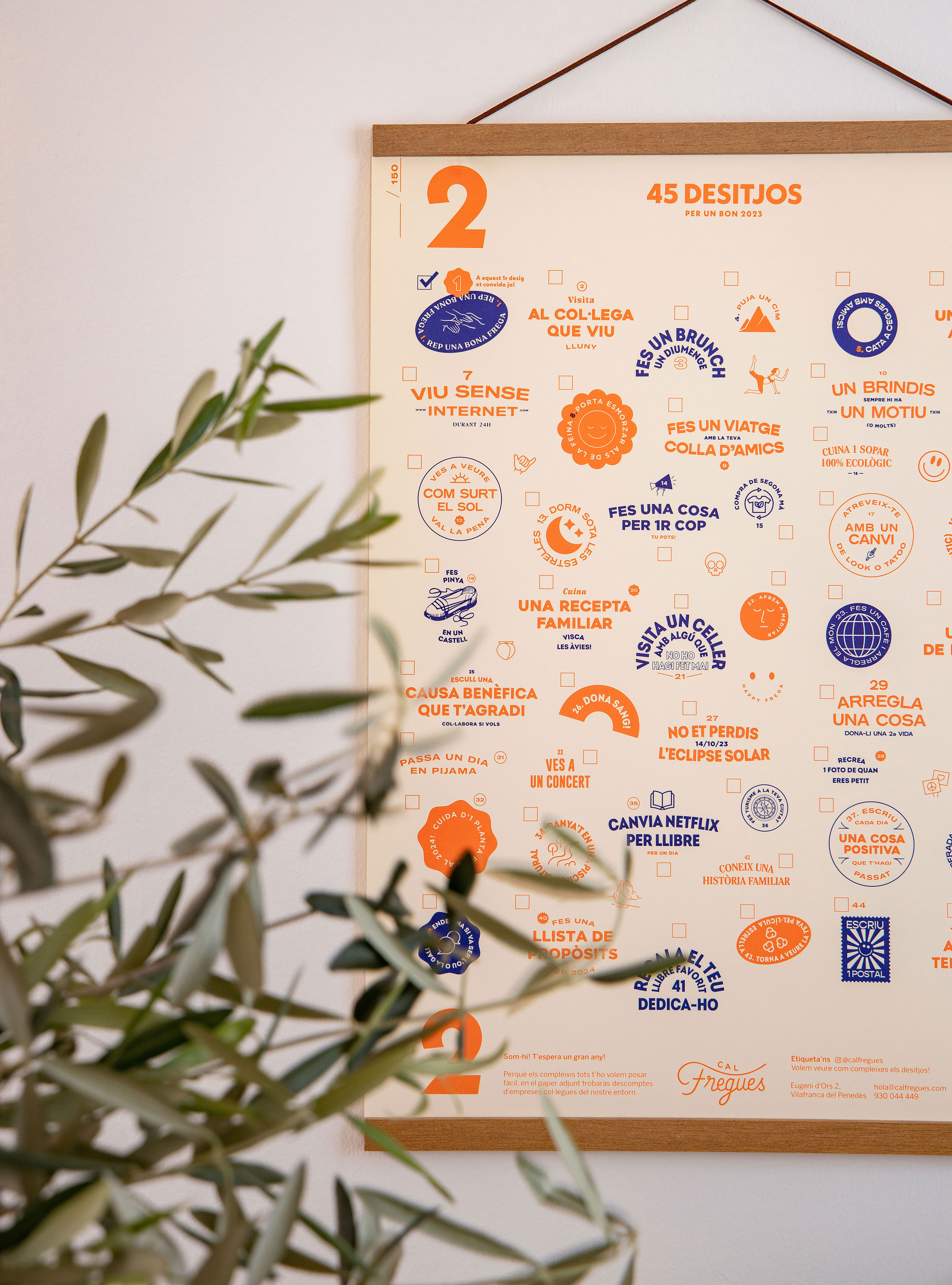 Part of our brief was to handle the design of this christmas gift voucher and that it also included a free gift. So, we decided to create a special voucher that was in itself a gift. We turned the voucher into a beautiful poster and giving it content: 45 wishes and challenges to accomplish during the hole 2023 year. And the most important thing, to the first wish you are invited! The person who gives you the poster is also giving you a physiotherapy session. The perfect present to someone you love.
